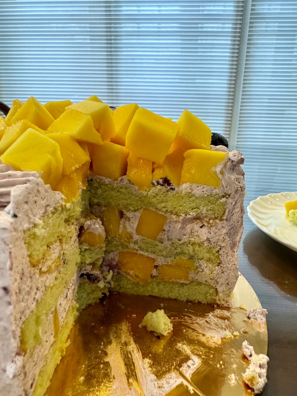Experience a tropical delight with our Berry Mango Pandan Cake - a vibrant fusion of Southeast Asian flavors and juicy berries! Soft, fragrant pandan chiffon layers provide a subtly sweet, floral base, while fresh mango chunks add a burst of tropical sunshine. The cake is luxuriously frosted with a rich mixed berry jam, blending the tangy sweetness of strawberries, raspberries, blackberries, and blueberries for a perfectly balanced finish.